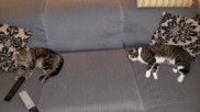 Na slechts twee "kennismakingsmaaltijden" (jouw voer gemengd met het vorige voer), accepteerden mijn twee katten, Jamie en Bella, het nieuwe voer uit zichzelf. Bella at haar prooi altijd op een tapijt. Ze "wikkelde" de muizen erin, daarom heb ik het tapijt nu weggegooid. Ze staat er nu op dat haar bakje op een handdoek staat, zodat ze het ook kan inpakken. Dus ik denk dat jouw eten mijn kat herinnert aan haar eerdere jachtpartijen. Is er iets beters?) Geen van beiden vindt de visversies echter zo lekker als de vleesversies. Dus, volledig overtuigd dat ik iets goeds doe voor alle partijen, zal ik in de toekomst de vleesversies van jullie voer blijven geven."